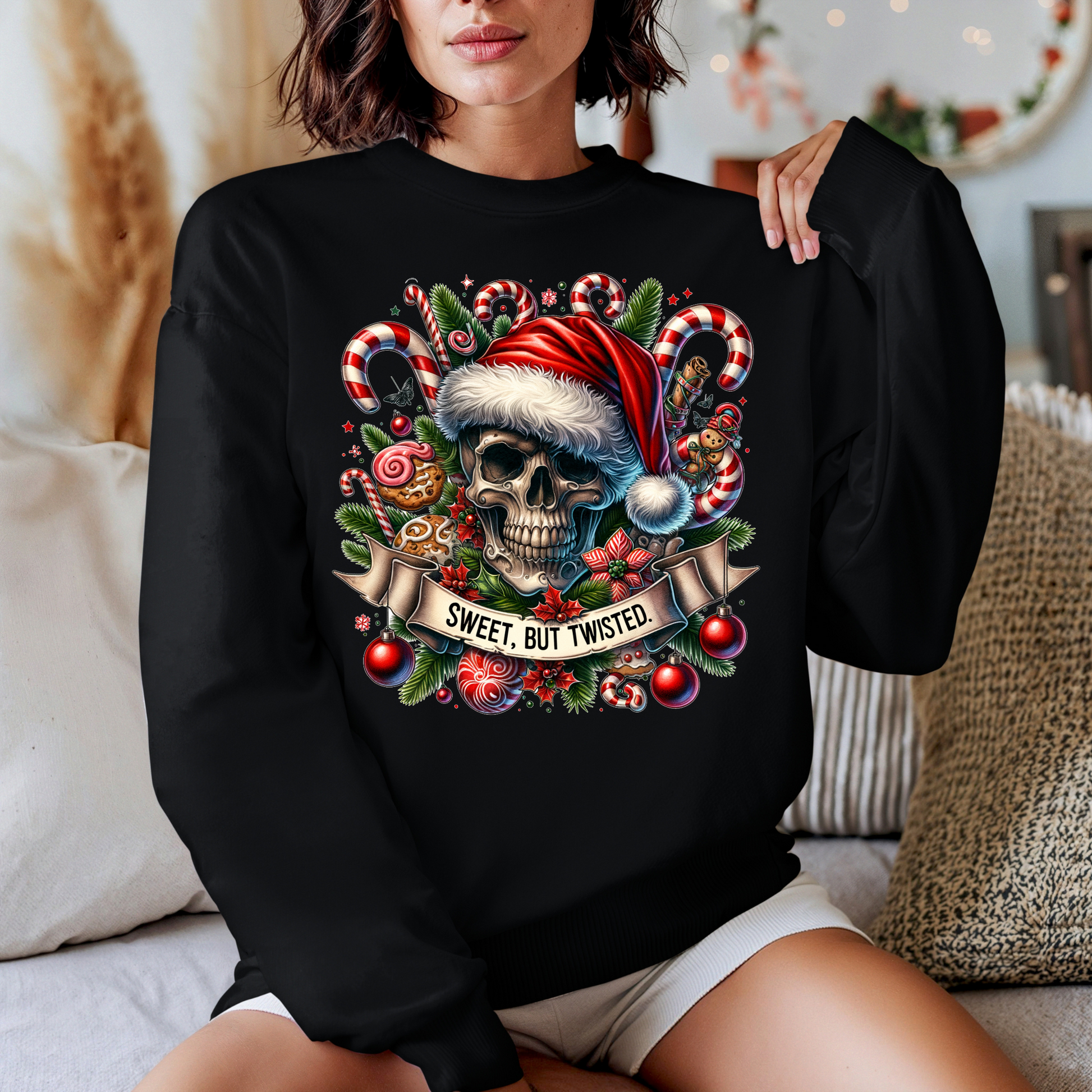 This is a Holiday Crewneck sweater with a full size full color DTF Print.